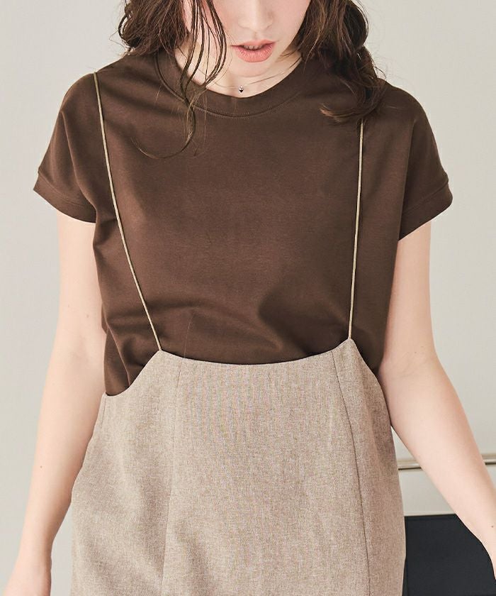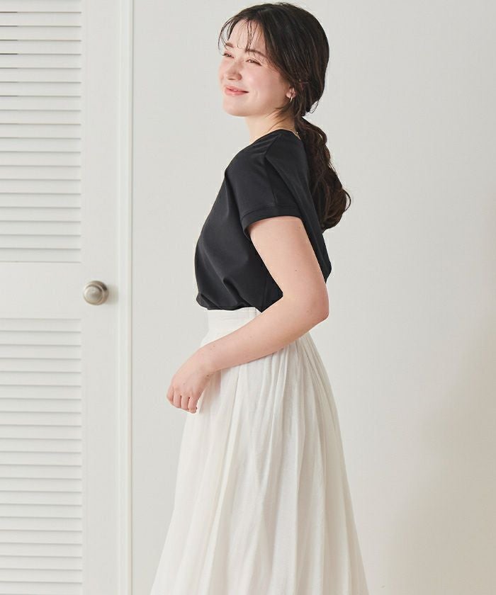 ・すっきりしたネックラインが顔まわりをきれいに見せ、アクセ映えも叶える一枚