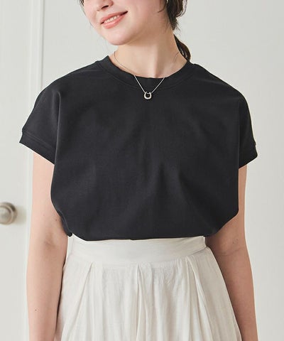 ・シンプルなのにほんのり女性らしい、フレンチスリーブが上品見えする大人フェミニントップス