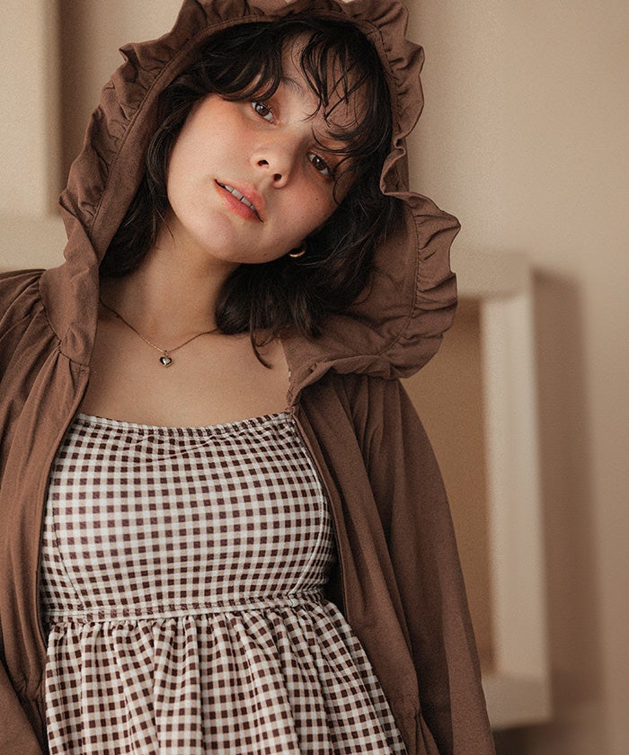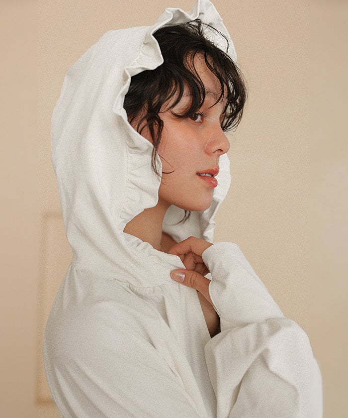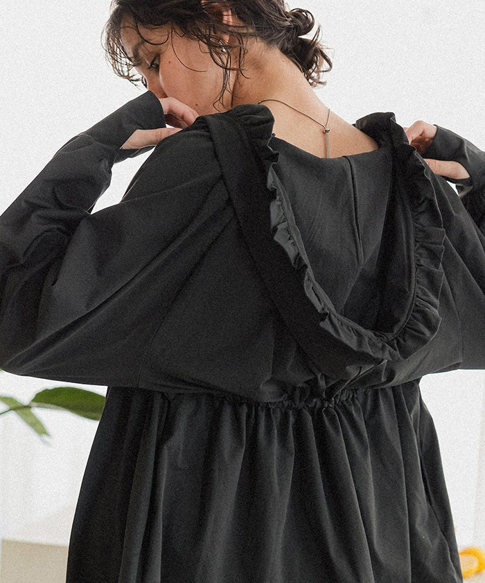 ・フードのフリルで女性らしく◎