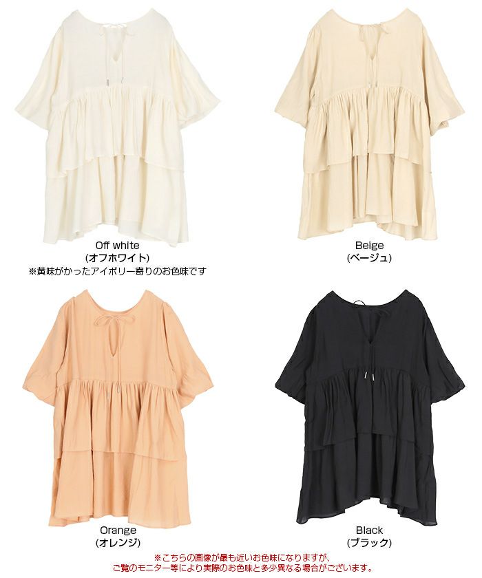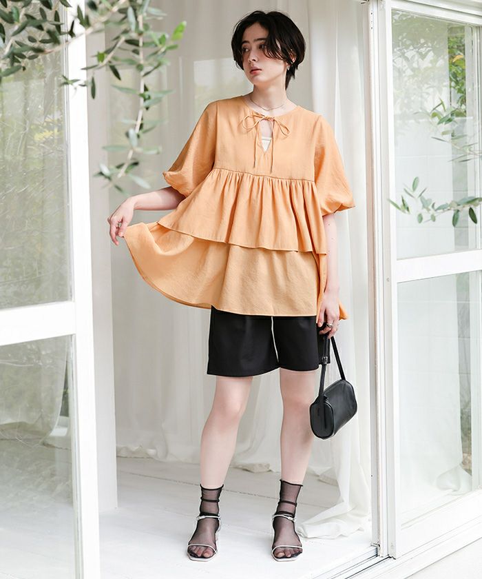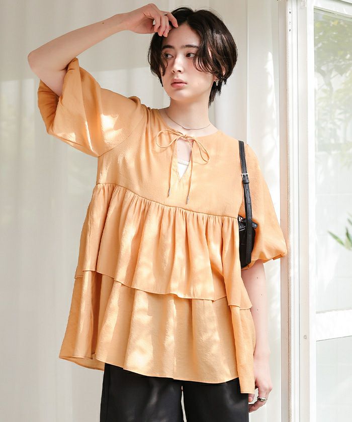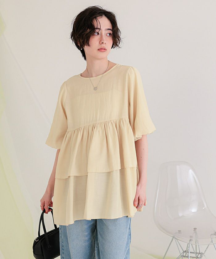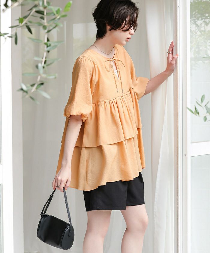 ・ふんわり重なるティアードフリルが主役。着るだけで華やぐ、甘さたっぷりのチュニックトップス