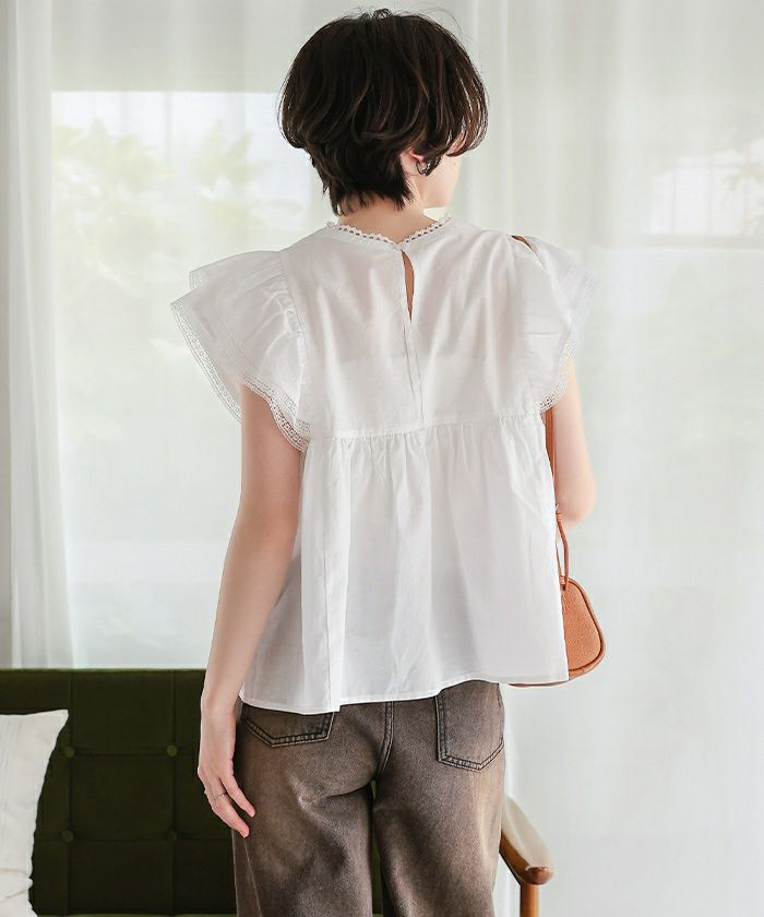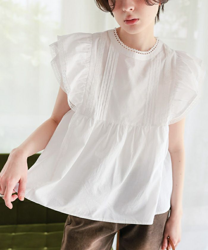 ピコレースデザインフリルブラウス