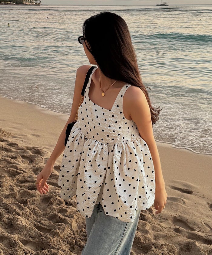 ・表情のある素材感がポイントで、ドット柄は程よく甘さをプラス。
