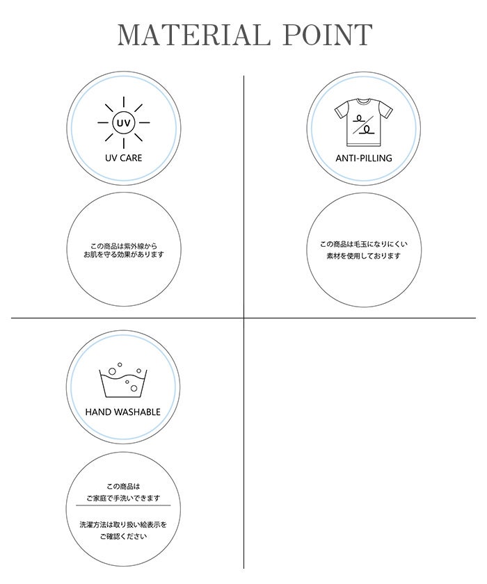 汗ジミ防止加工・撥水加工・UVケア加工は永久的なものではありません。繰り