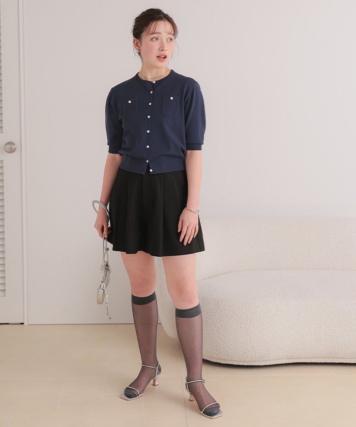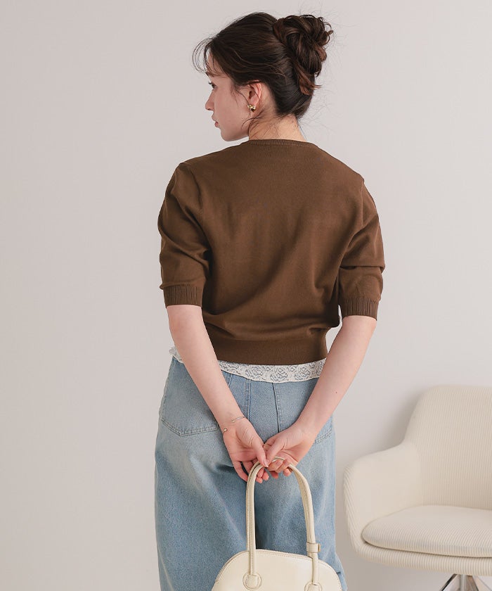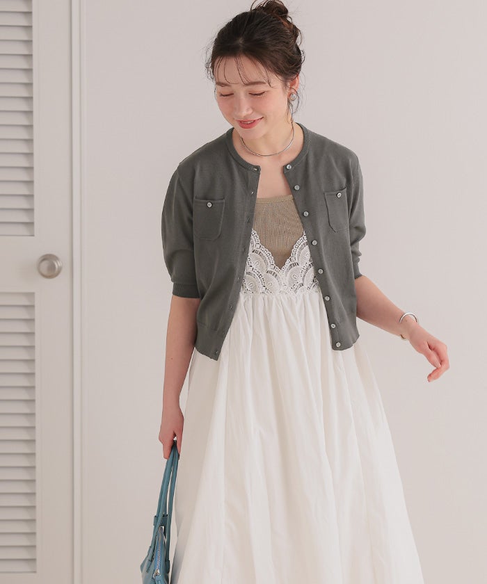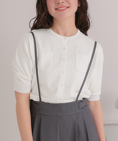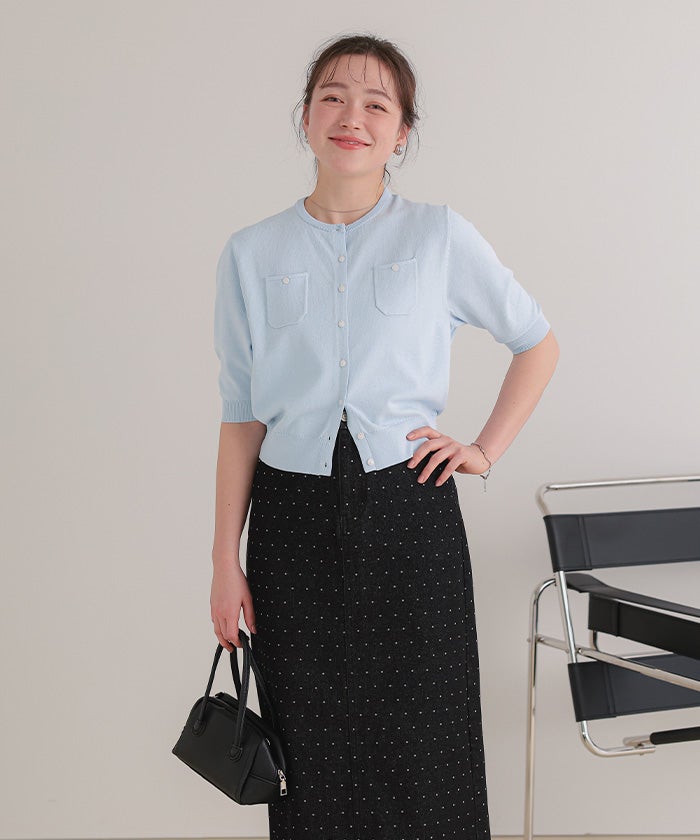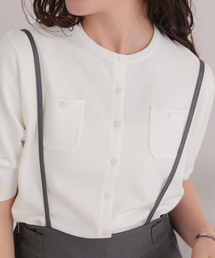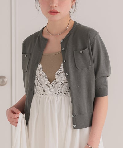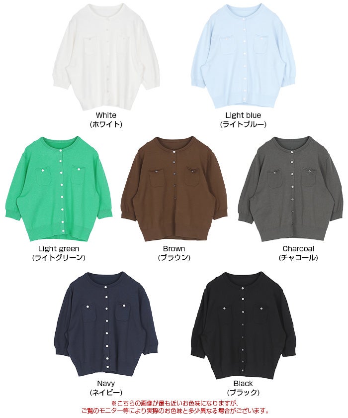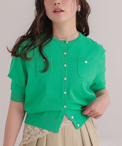 UVケア/抗ピル胸ポケットハーフスリーブニットカーディガン【メール便可/100】