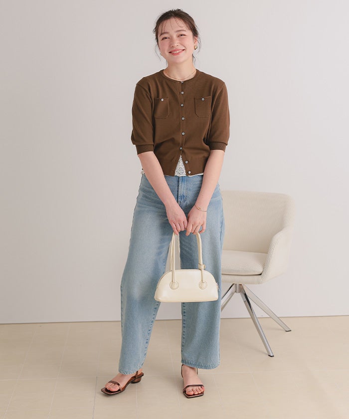 ・胸ポケットがアクセントになった、程よくカジュアルな抜け感カーディガン