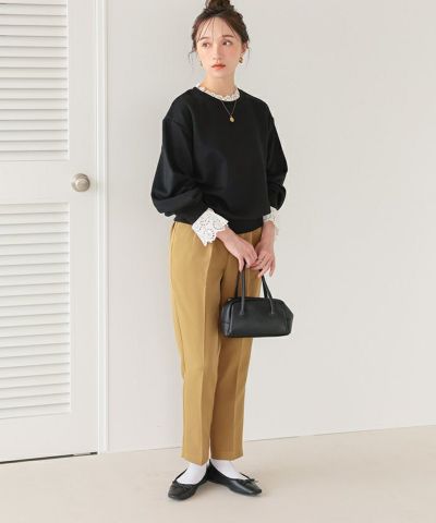 ・裾に向けてすっきりとしたラインのテーパードパンツはオフィススタイルにもおすすめ。