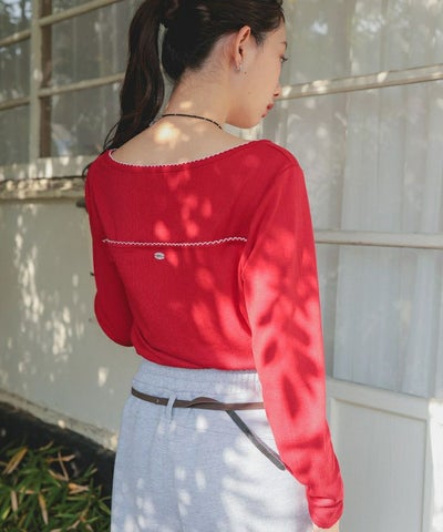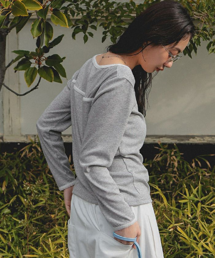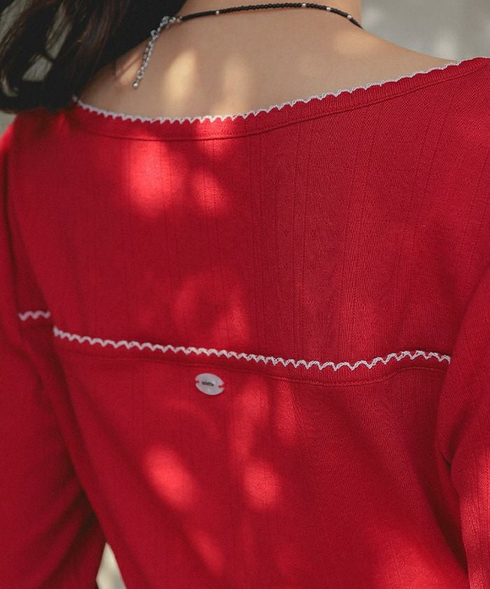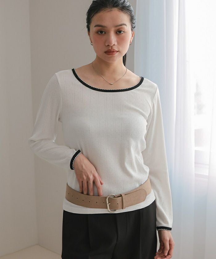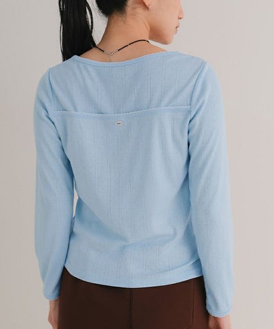 ・アイレット柄のカットソー生地を使用したピコ刺繍がポイントのトップス
