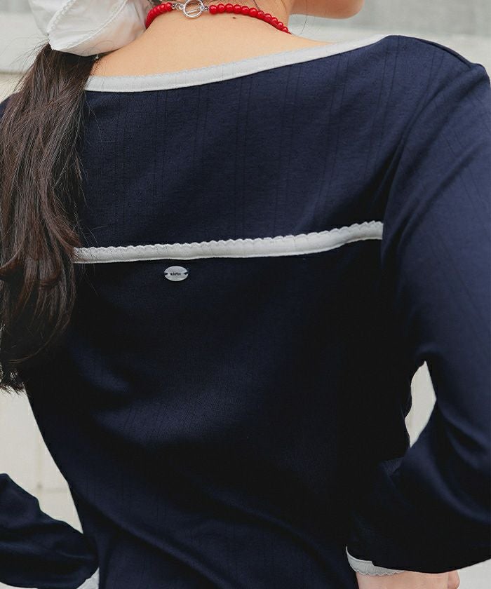 ・襟と後ろ切替・袖口にはピコ刺繍をワンポイント