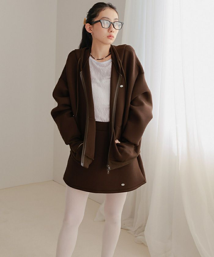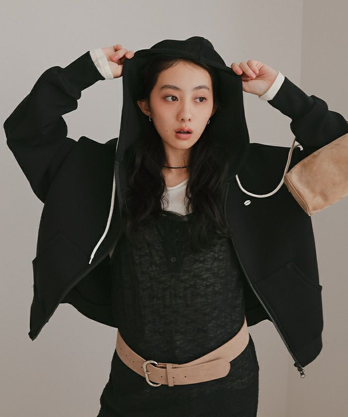 ・ダンボールニット素材を使用したダブルジップパーカー