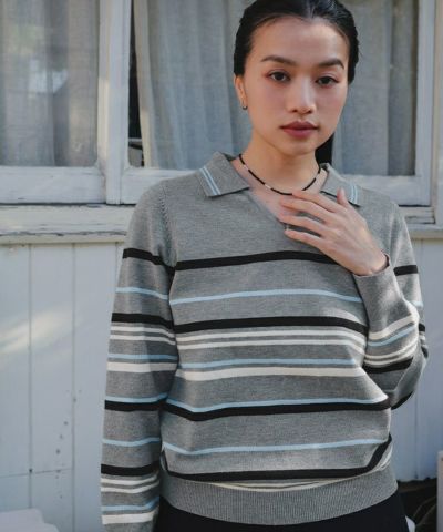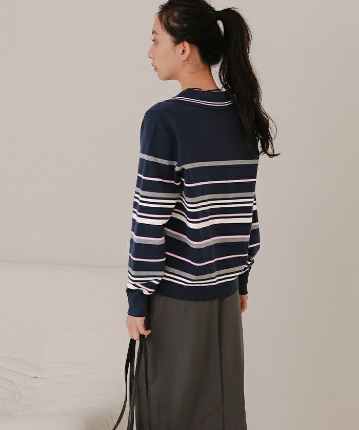 スキッパーマルチボーダーニット【miette ミエット】