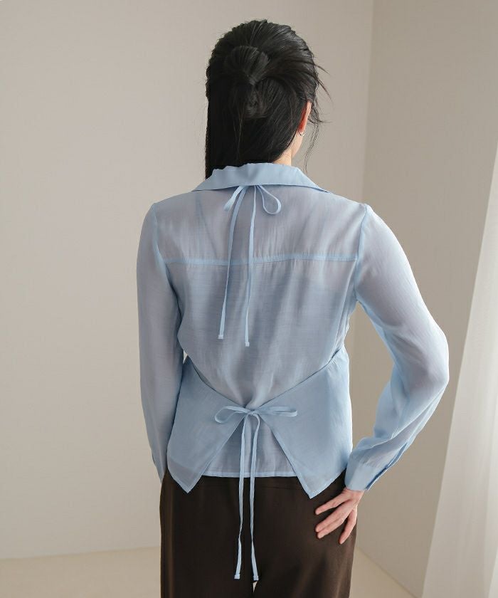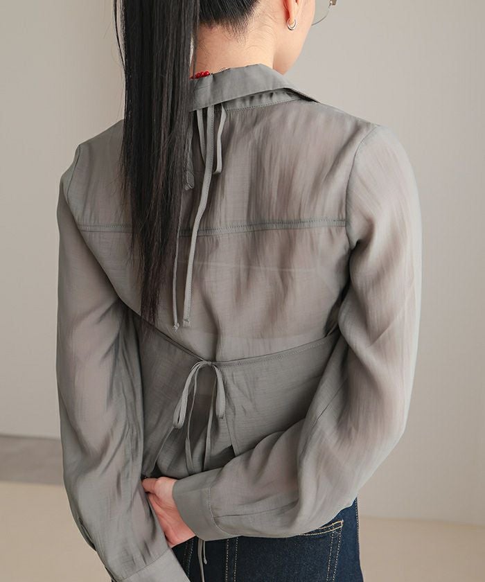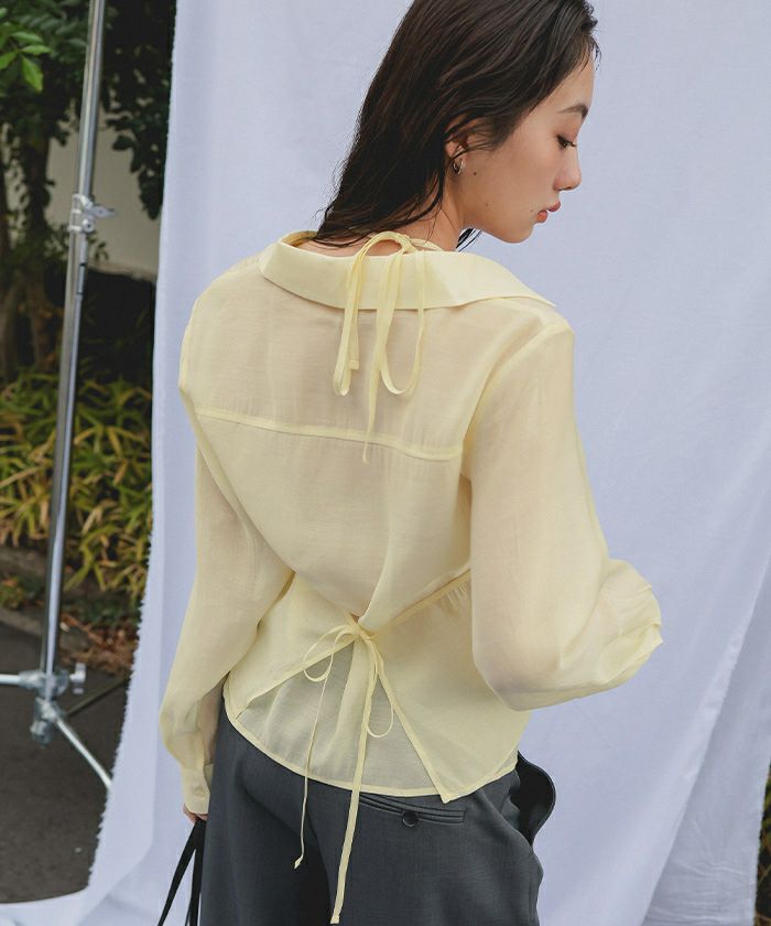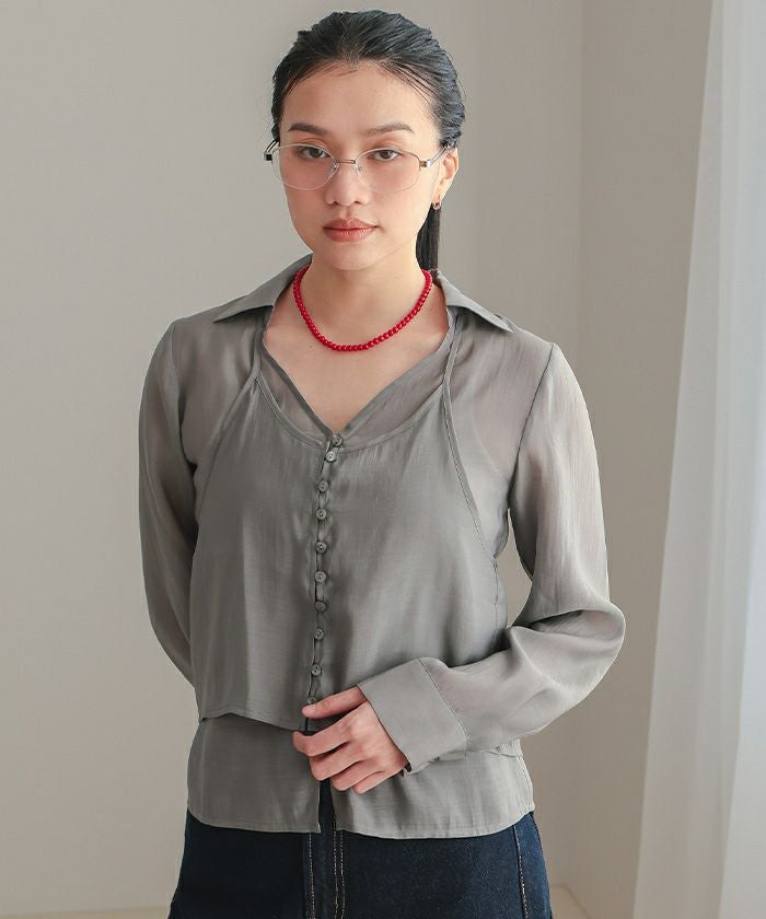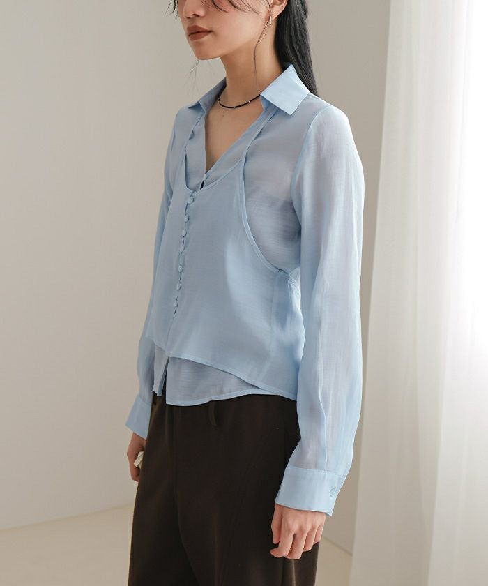 ・ホルターネック型キャミソールとスキッパー衿ブラウスを重ねたシアーホルターネックブラウス