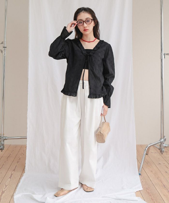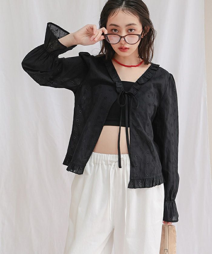 フリルデザインコットンレースブラウス【miette ミエット】【メール便可/100】