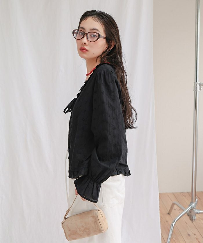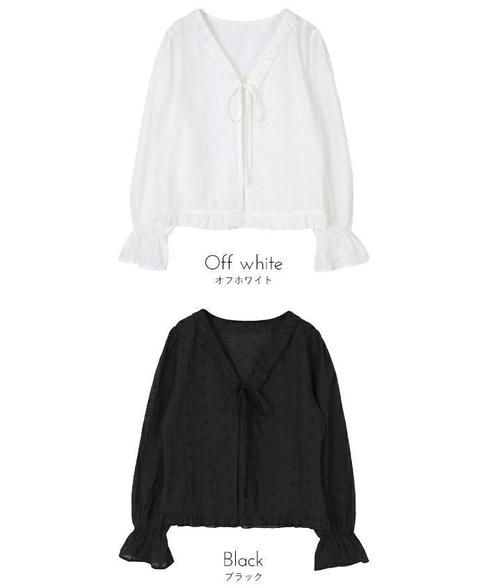 ・花柄コットンレースにフリルをあしらった、フリルデザインブラウス