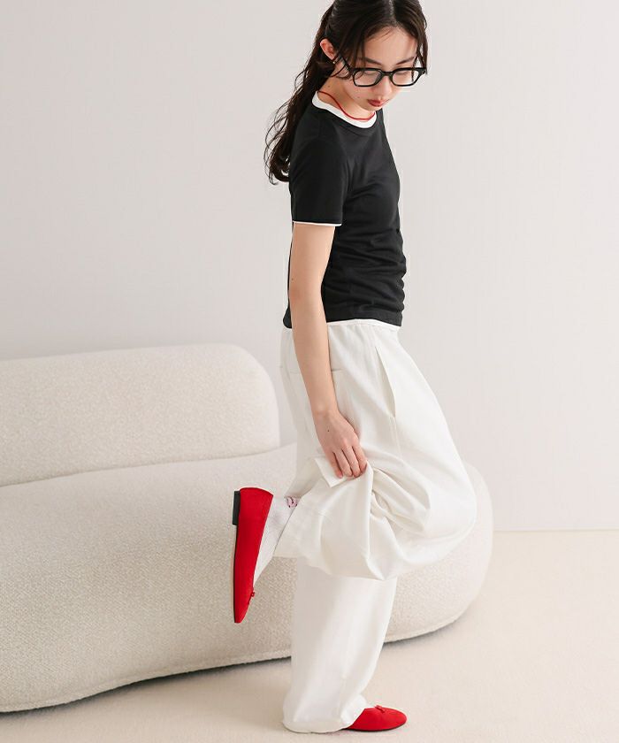 ・外側トップスの左脇にタグを施し、さりげないポイントに