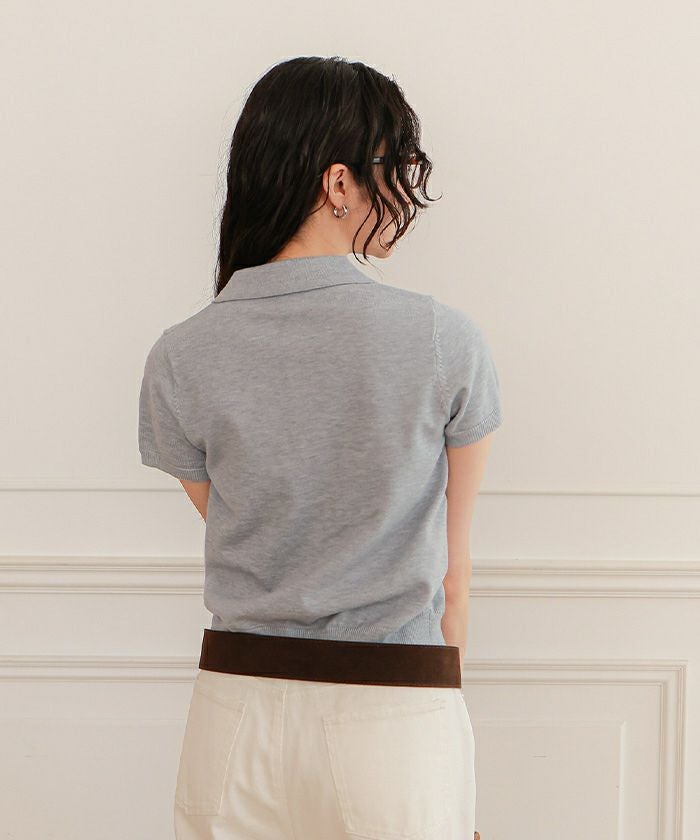 商品情報 ・前端に施したチェック柄パイピングがポイントの半袖ニット