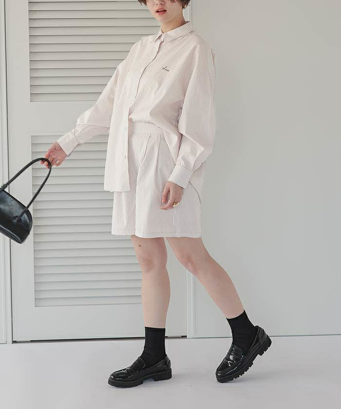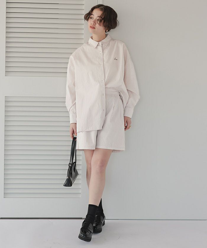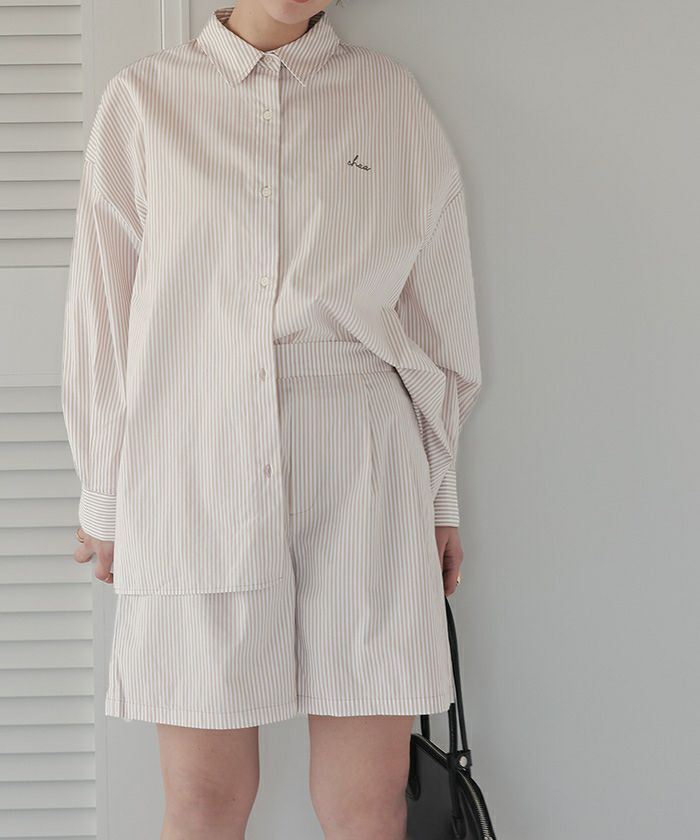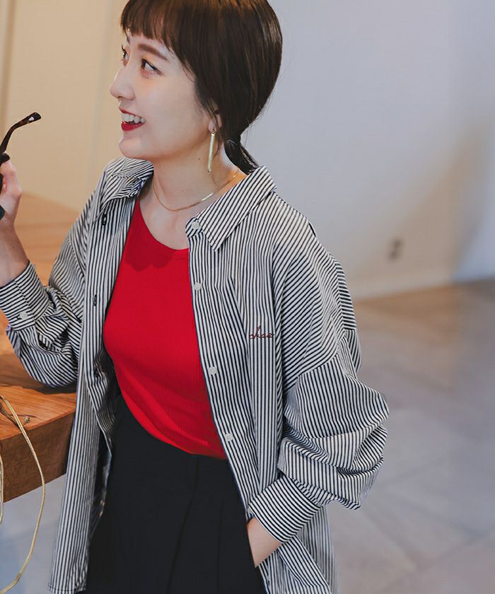 他の画像を見る 【さやかさん25S/Sコラボ】【IGTV】 【titivate】【期間限定★SALE】 デザイン刺繍入りストライプオーバーシャツ 通常価格 ¥ 5,489 価格 ¥ 2,744 税込 お気に入りに登録する