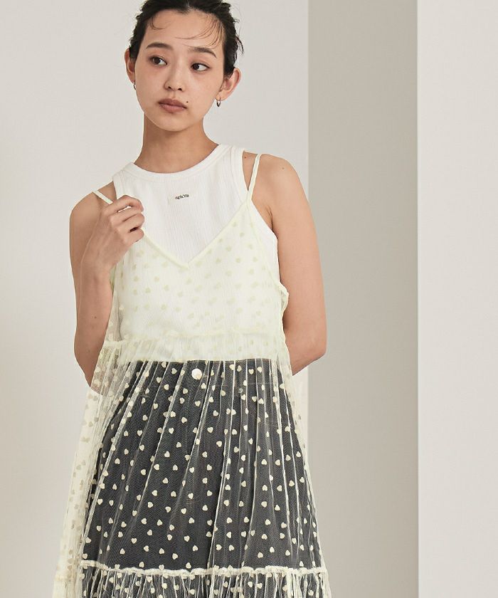 他の画像を見る ■【miette】【期間限定★SALE】 ハートフロッキーチュールキャミワンピース【miette ミエット】【メール便可/100】 通常価格 ¥ 6,589 価格 ¥ 2,635 税込 お気に入りに登録する