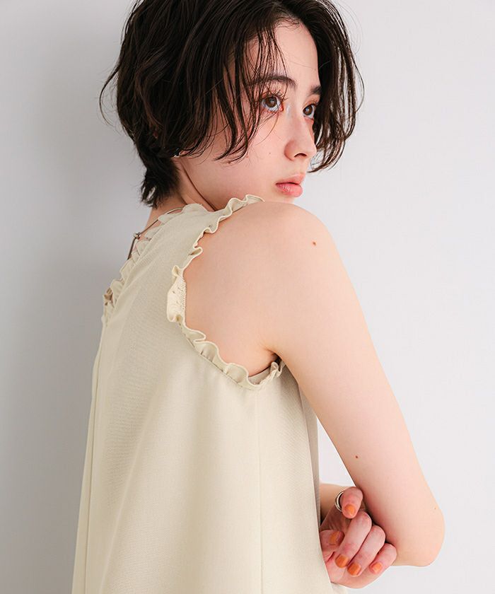 他の画像を見る 【新作★期間限定20%OFF★4日11時カラ】【低身長さん向けサイズ有り】【titivate】 リネンライクVネックフリルデザインノースリーブワンピース 通常価格 ¥ 5,929 価格 ¥ 4,743 税込 販売期間 2026/03/04 11:00 〜 2026/03/11 10:59 お気に入りに登録する
