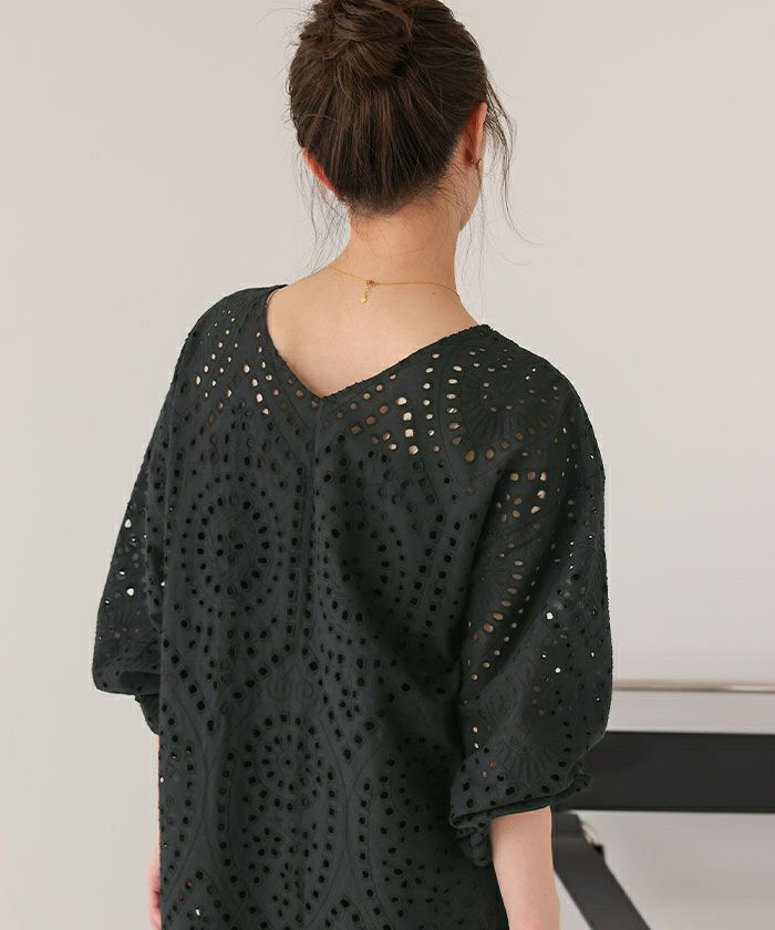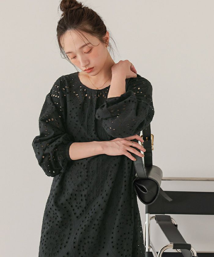 ・コットン刺繍レース素材が可愛いワンピース。