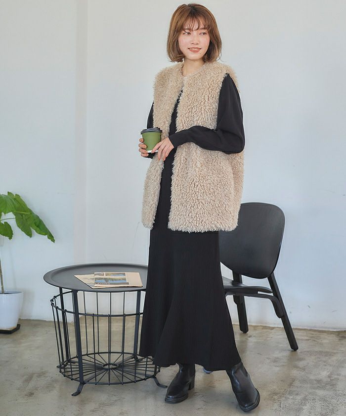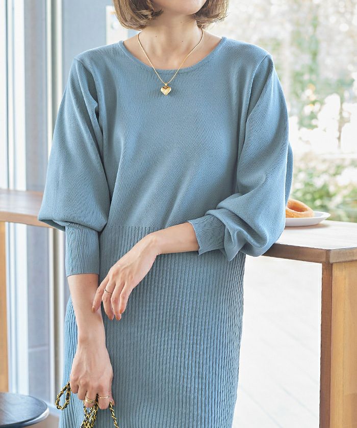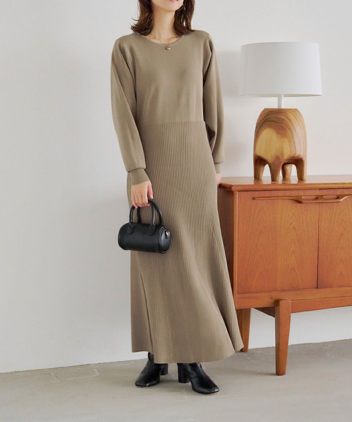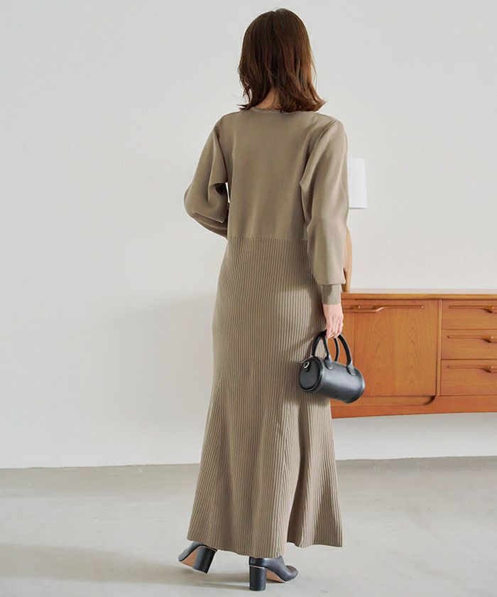 ・女性らしいセミマーメイドシルエットが魅力のニットワンピース。