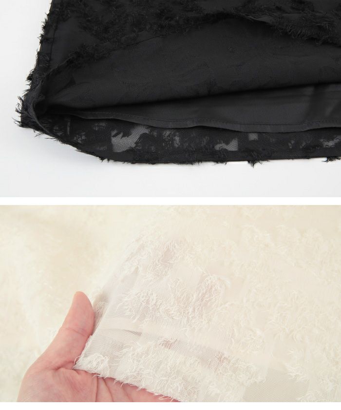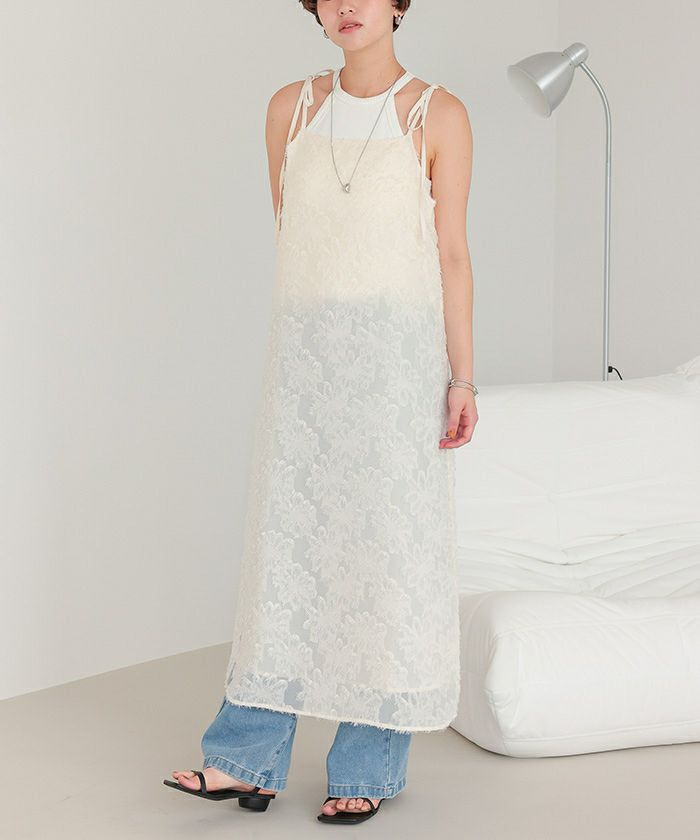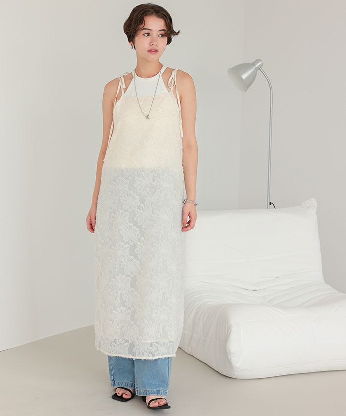 ・フラワーフリンジの生地が大人可愛いワンピース。