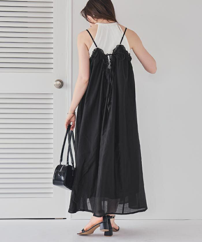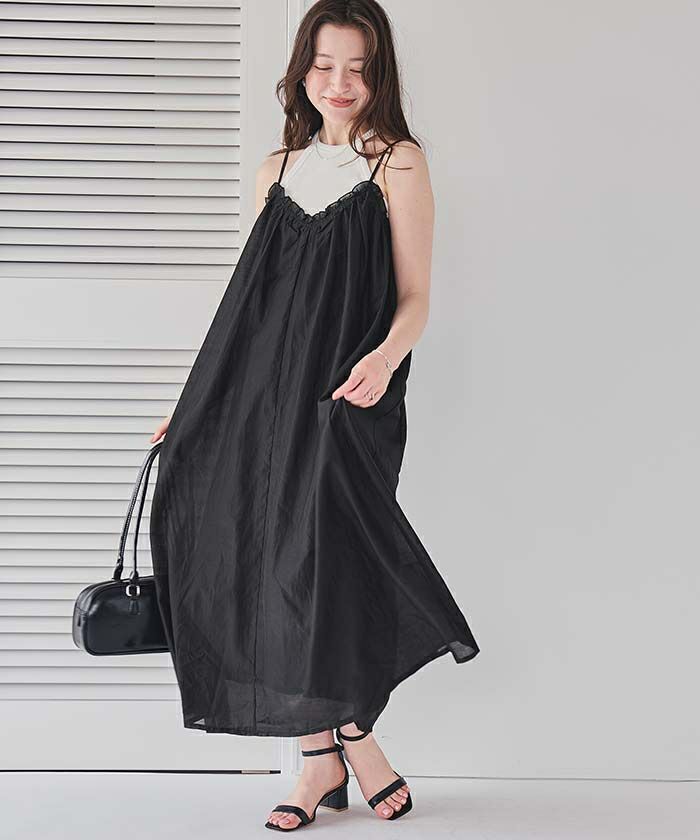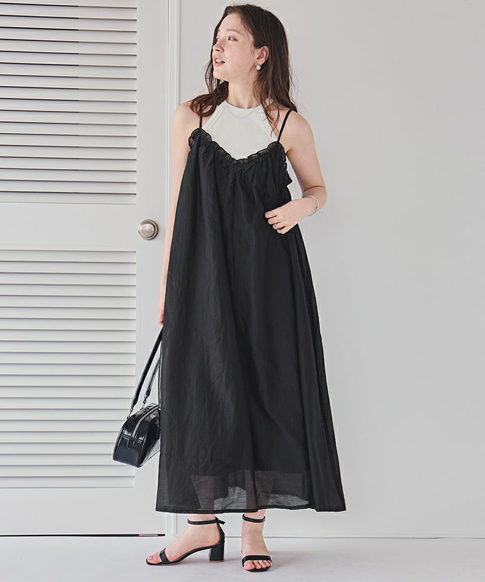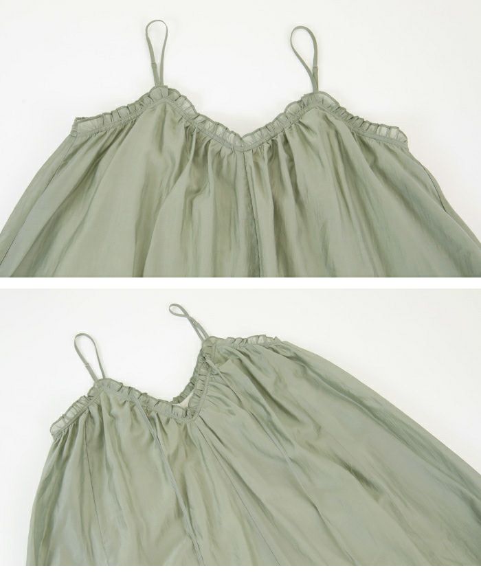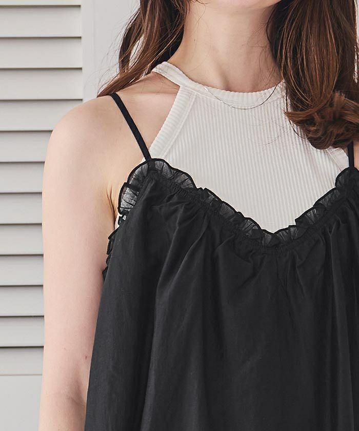 ・胸元のフリルデザインとふんわりとしたボリューム感が魅力のキャミソールワンピース。