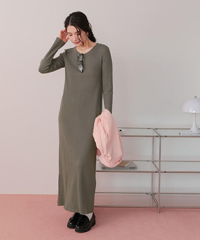 ・キャミトップスやベストなどに合わせやすい万能リブカットソーワンピース