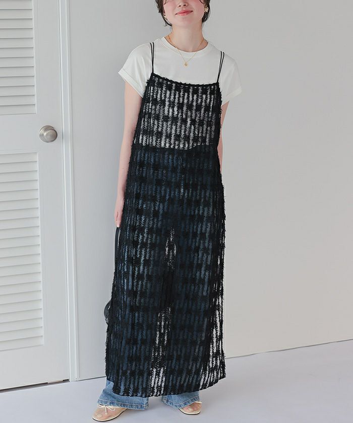 ・前後2wayで着用できる、フリンジディティールが可愛いキャミソールワンピース。