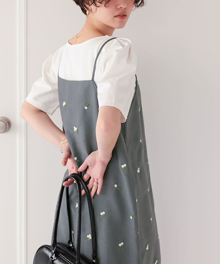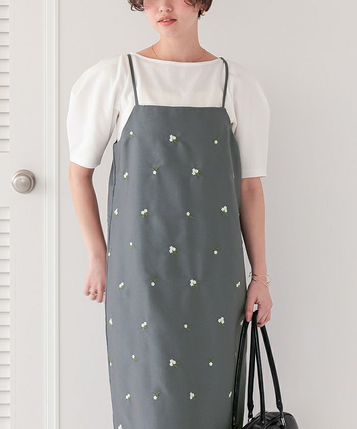・花柄刺繍を前面にいれ、シンプルなトップスとのレイヤードでも華やかさプラスしてくれる1枚