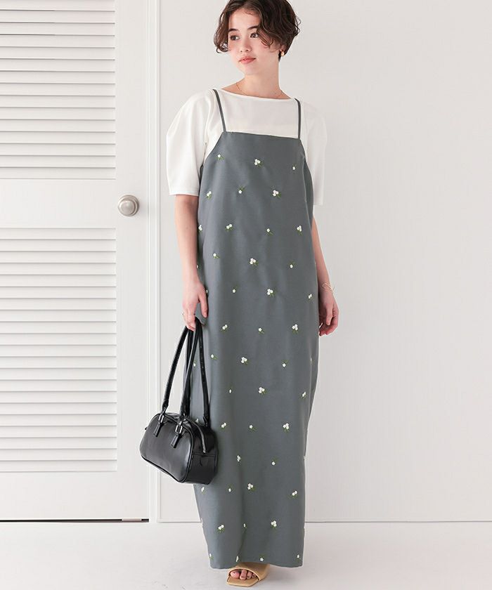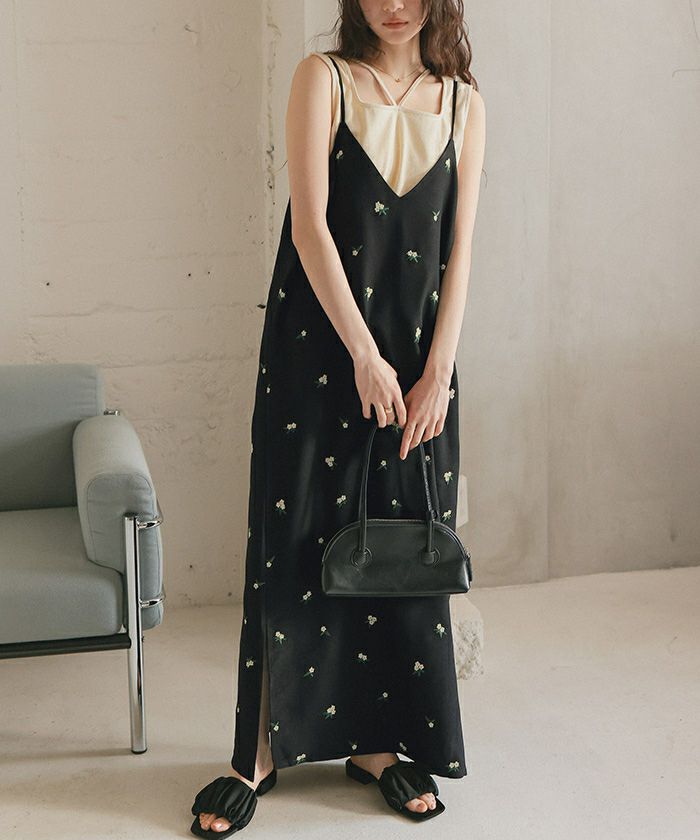 前後2wayフラワー刺繍キャミソールワンピース【メール便可/100】
