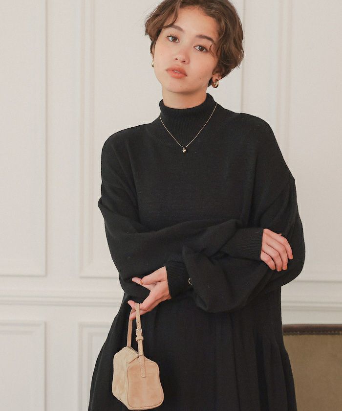 ・柔らかいニット素材とティアードデザインが魅力の、女性らしいシルエットのワンピース