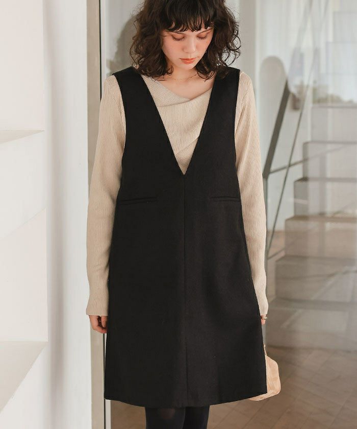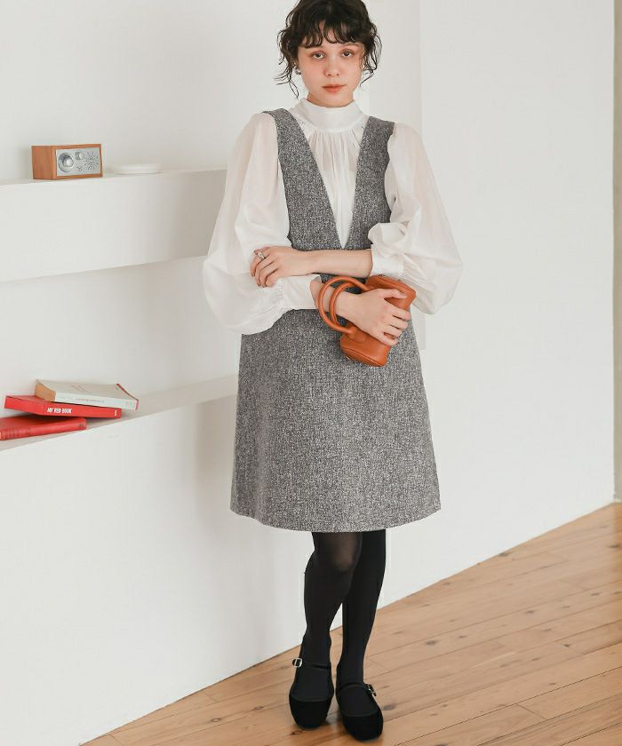 Vネックツイードショートジャンパースカート