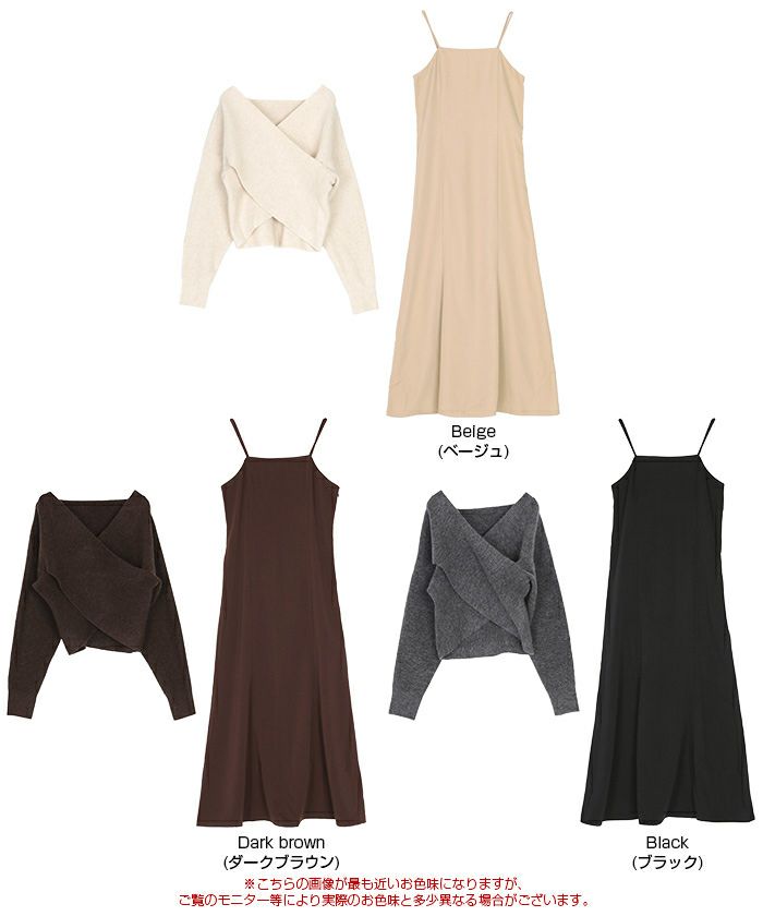 クロスデザインニット付きキャミソールワンピース