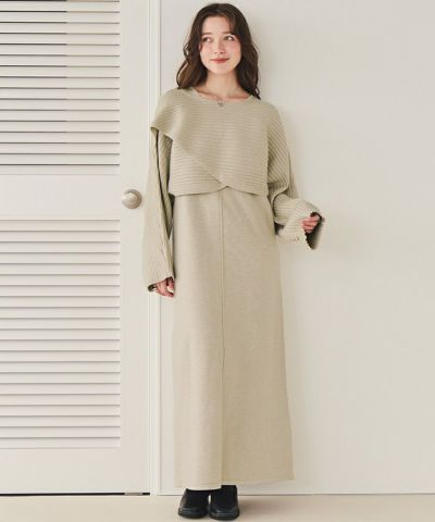・1枚でレイヤードが完成する、カシュクールリブトップス×ノースリワンピのセットアイテム