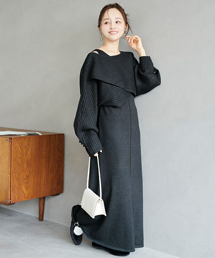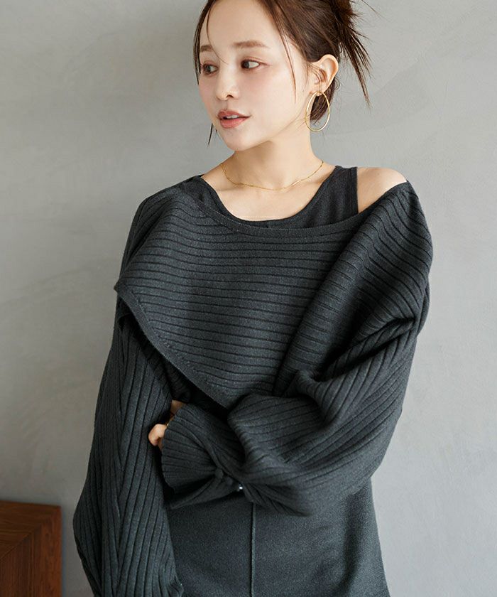 ・リブ編みトップスは程よくゆったりしたシルエットで、ワンピースとのメリハリが女性らしさと細見えを叶えるベストバランス