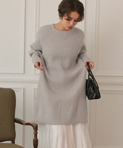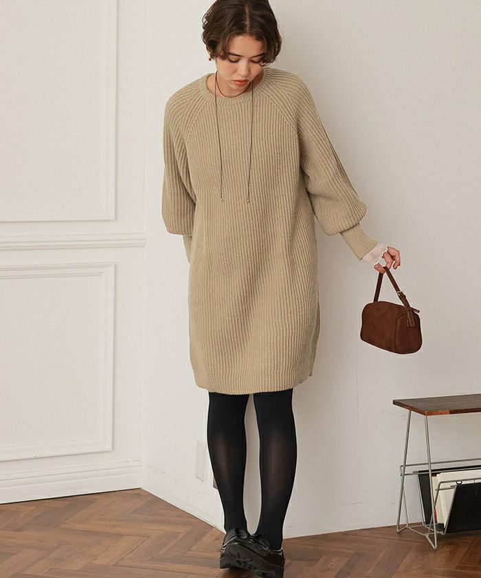 ボリュームスリーブニットミニワンピース