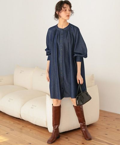 ギャザーボリュームシルエットデニムワンピース