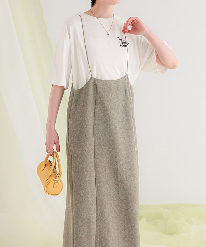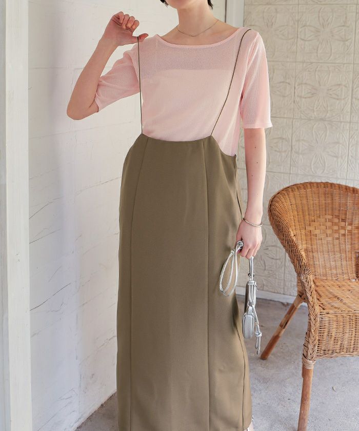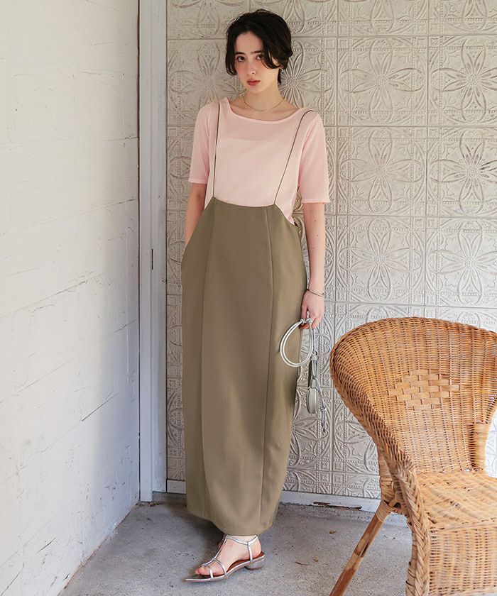 ・女性らしい華奢なストラップのサスペンダースカート