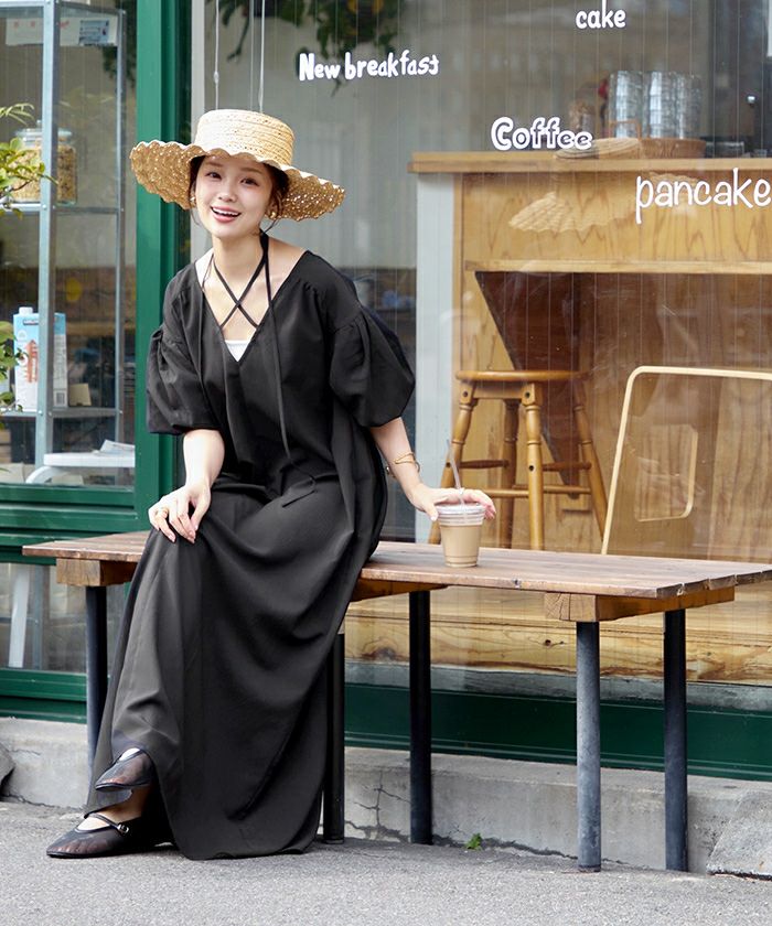 ・首元はチョーカー風にアレンジが出来るトレンド感のあるワンピース