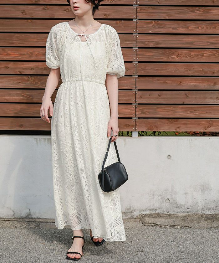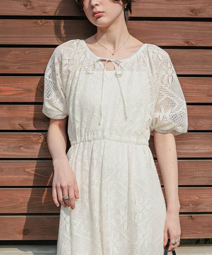 ・裾に向かって広がるレースの表情が軽やかで、春夏シーズンにぴったりの1枚