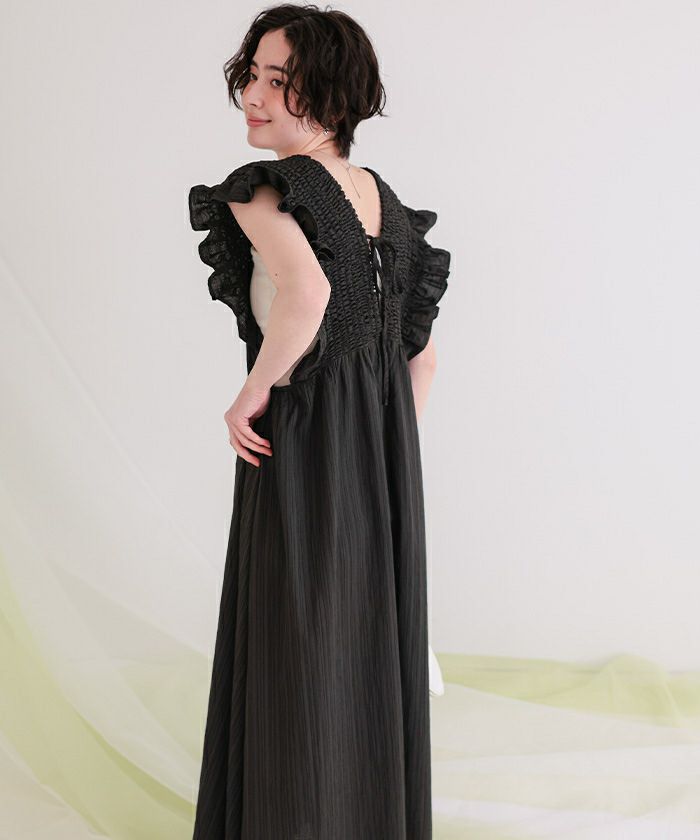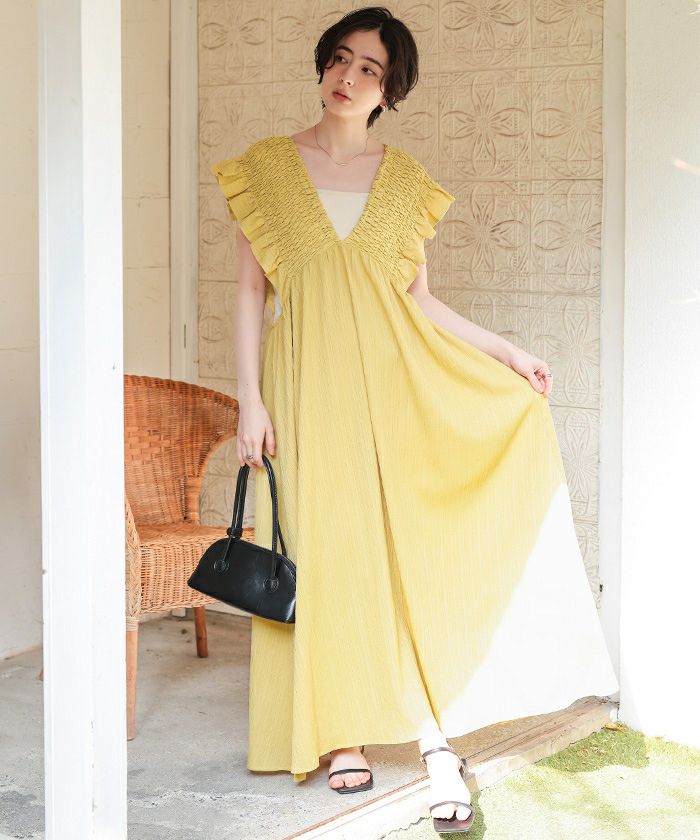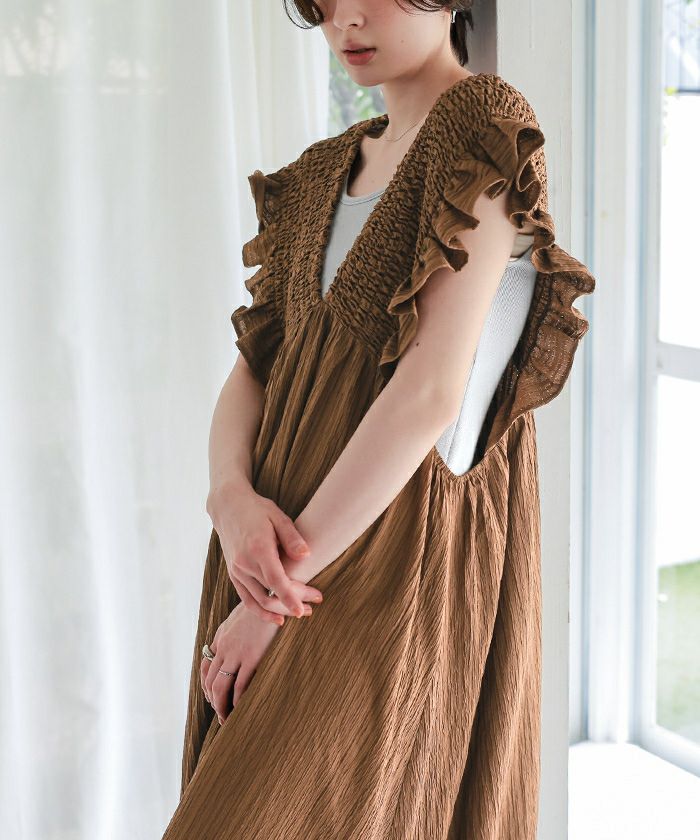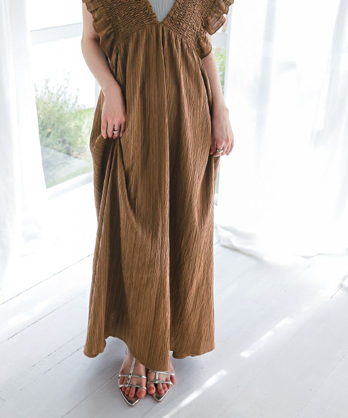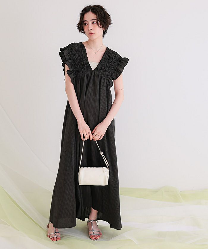シャーリングフリルワンピース