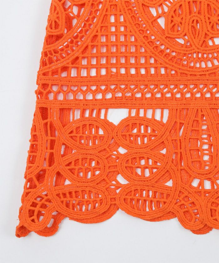 ・大きめ柄のレース生地が魅力のワンピース。