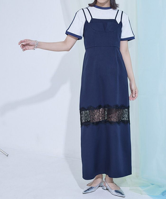 レース切替キャミソールワンピース【miette ミエット】【メール便可/100】
