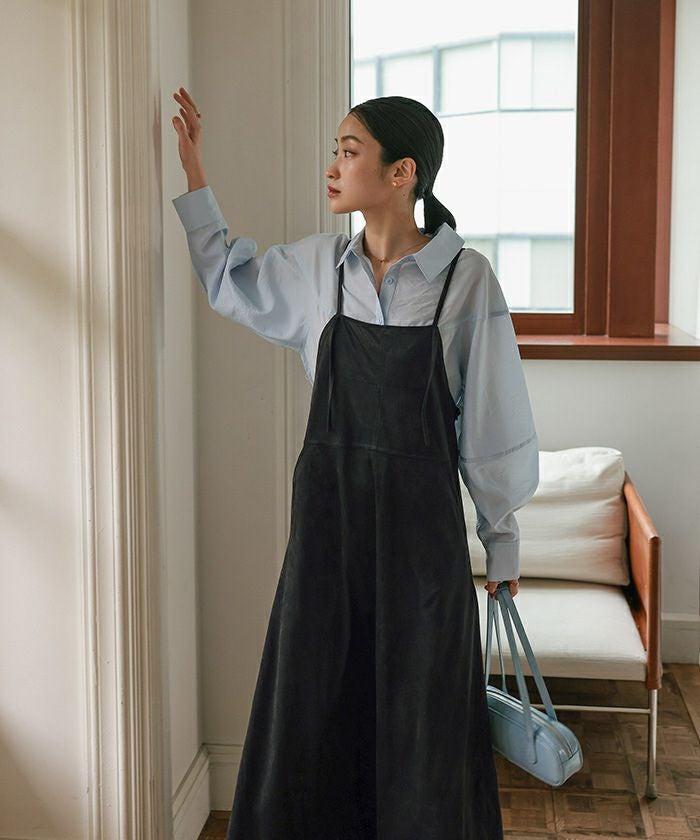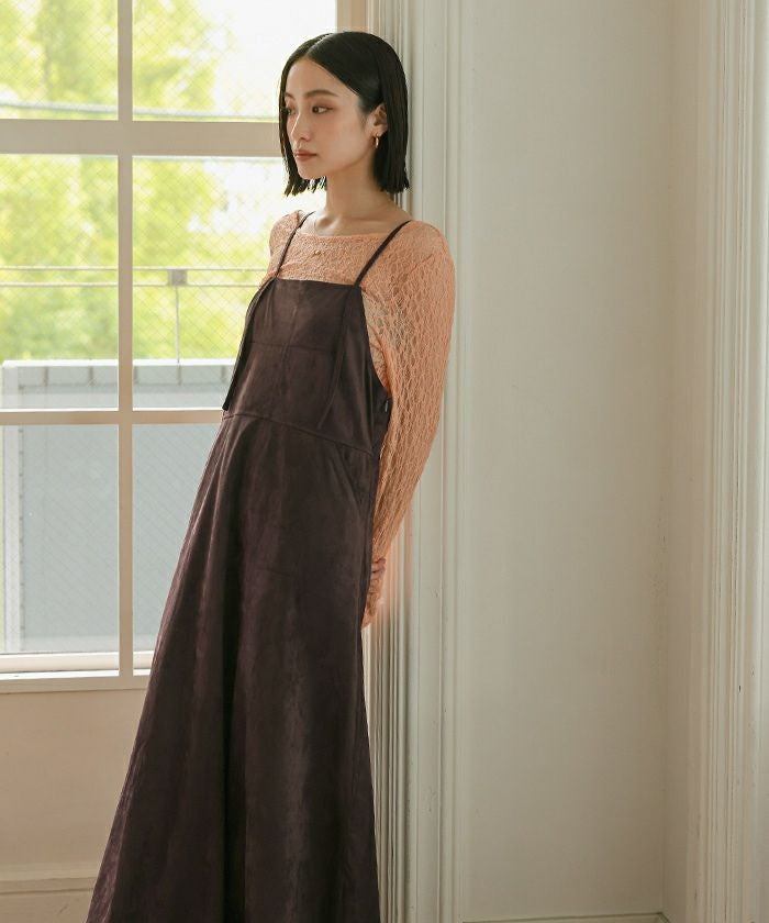 ・季節感のあるスエード素材がかわいいワンピース。