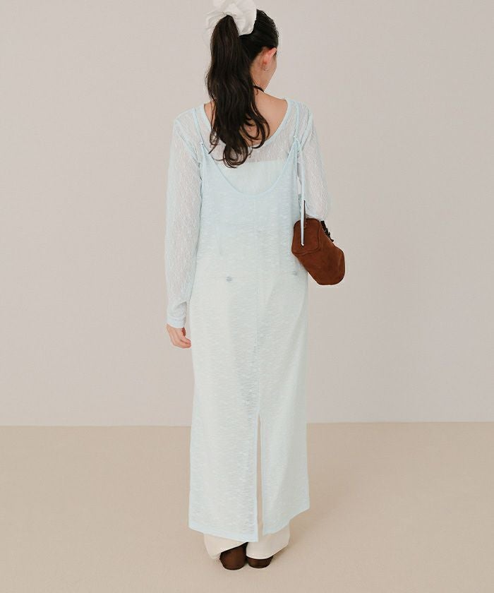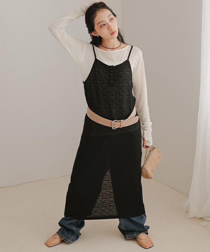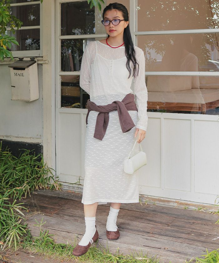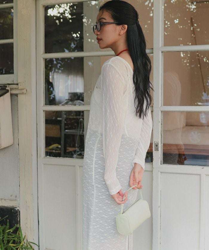 ・トレンドデザインを取り入れた程よい透け感のある素材が魅力のヘンリーネックレースワンピース