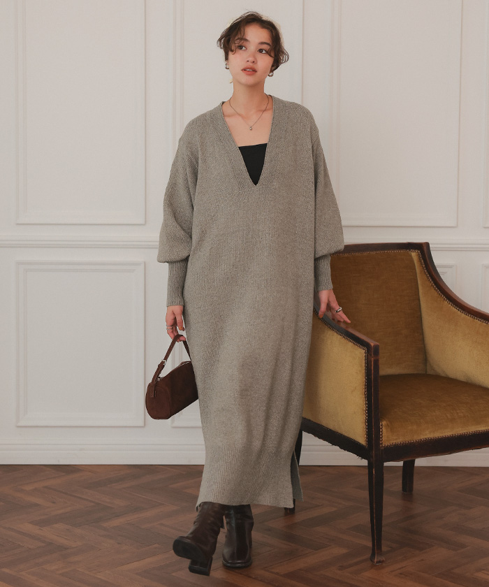 ・裾脇のスリットが抜け感をプラスし、重たい印象になりにくい。