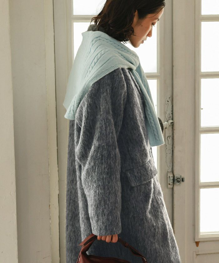 ・クラシックなチェスターコートを、毛足のある柔らかなシャギー素材でアップデート