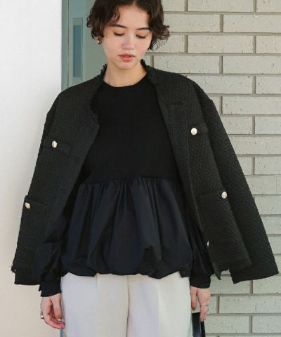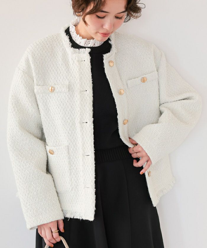 ・トレンドのツイード素材を使用したジャケット。