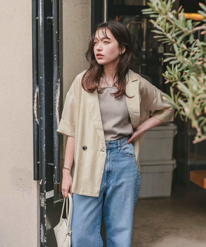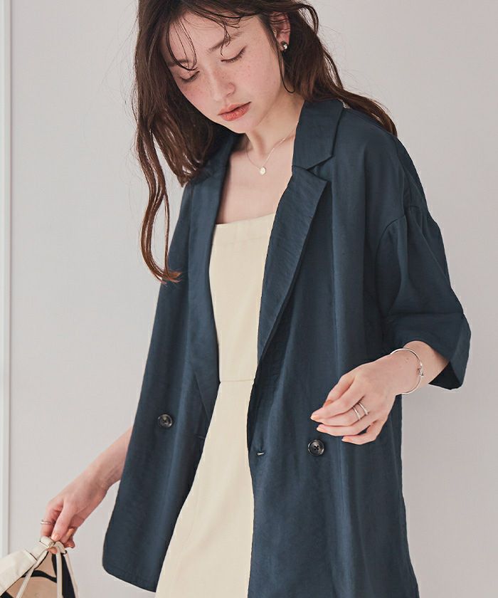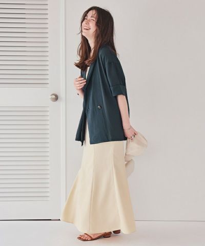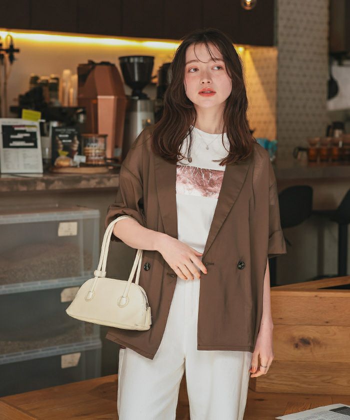 ・綺麗目になりやすいアイテムですが、袖にターンバックデザインが入っているのでカジュアル感が足され、どのシーンでも着やすいデザインになってます