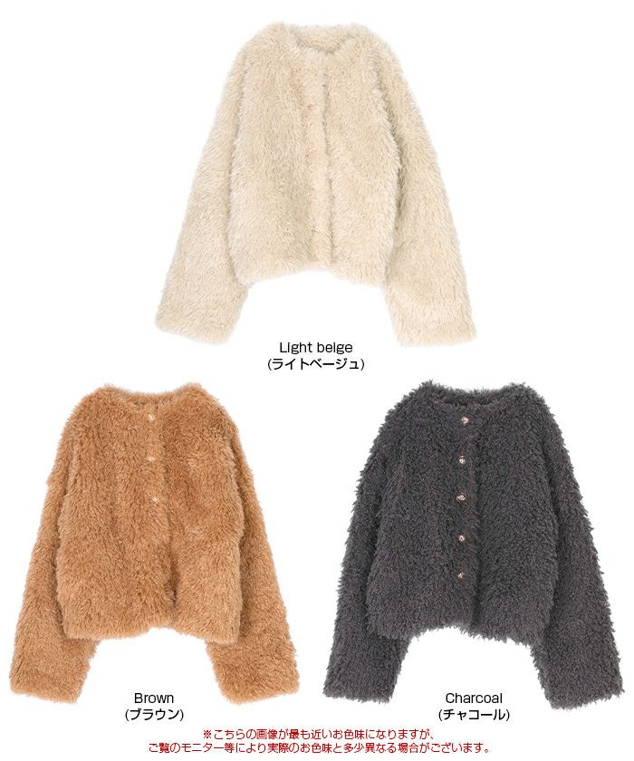 中綿が入っているので暖かさがあります。中に着込んでも大丈夫なくらいサイズに余裕があります。個人的に怒肩なので、結構ボリュームがあるように見えました。ファーが柔らかいので、使っていくうちに毛が寝てしまうように思います。ボタンが軽いのではめたり、外したりがやりにくかったです。濃いめの色のデニムに合わせて着てみましたが、ブラウンが明るめなので、見た目重すぎずかわいく着れます。プードル感が可愛くて気に入りました。今シーズンたくさん着たいと思います。
